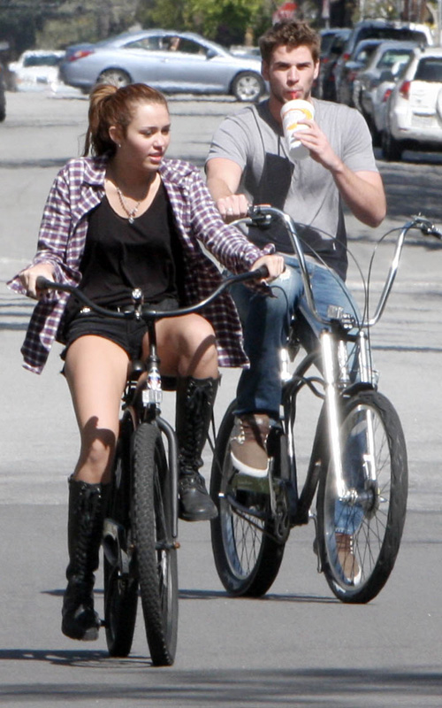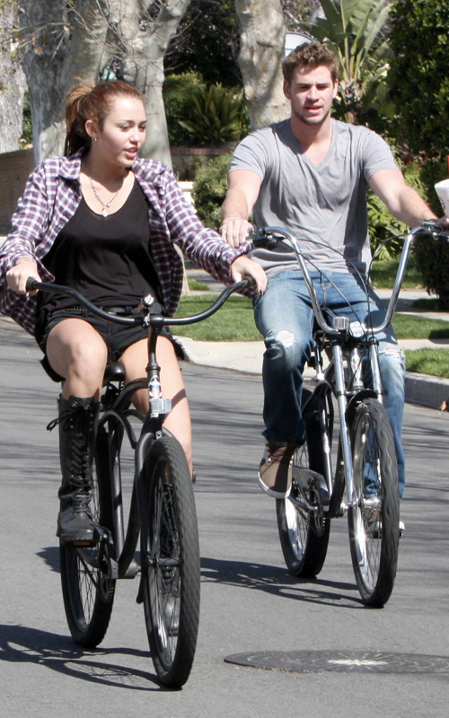 Juntos para un esparcimiento por la ciudad, Miley Cyrus y Liam Hemsworth fueron vistos participando en un paseo en bicicleta por Toluca Lake, el viernes por la tarde (5 de marzo). La preciosidad de Disney y su novio y co-star australiano parecían disfrutar plenamente pedaleando mientras se reían entre sí.